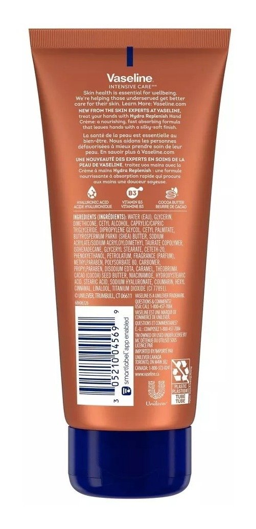 HECHO CON INGREDIENTES HIDRATANTES: Vaseline Intensive Care Hydra Replenish Hand Crème hidrata profundamente para una piel suave después de un solo uso.