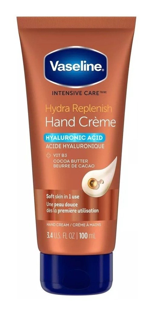 PARA MANOS BELLAMENTE HIDRATADAS: Vaseline Intensive Care Hydra Replenish Hand Crème está hecha con ácido hialurónico, vitamina B3 y manteca de cacao.