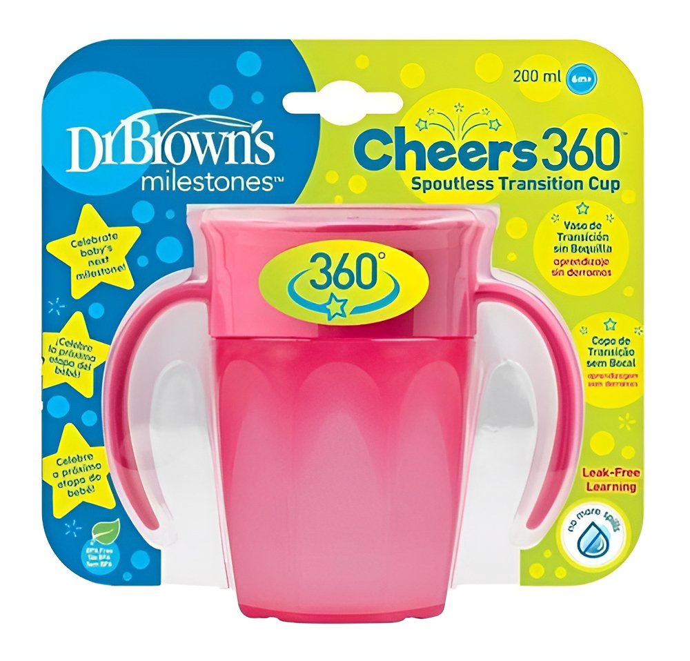 Vaso De Transicion Sin Boquilla Dr Browns 360° 7oz/200ml 6m+ Color Rosa